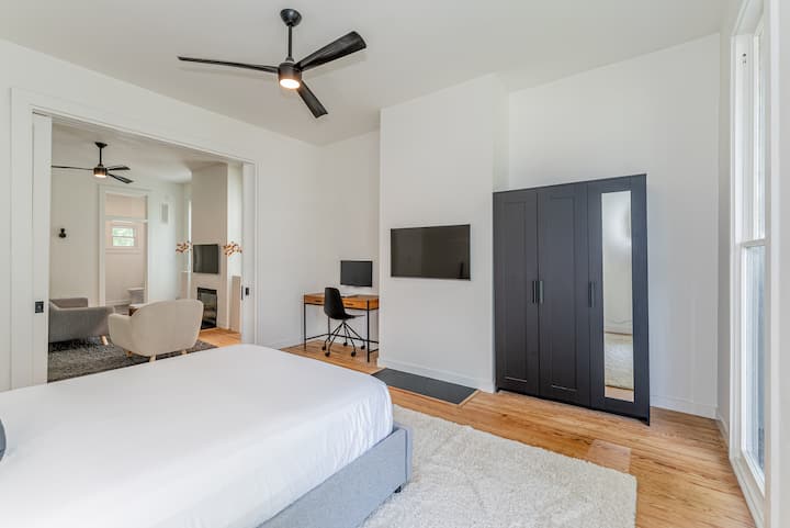 This beautiful Airbnb is located inside a 120-year-old restored home in Richmond. The house combines historic architecture with modern amenities, making it a unique place to stay.